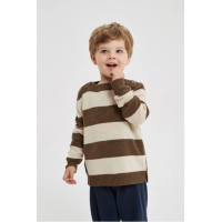 OEM factory boy cashmere word pattern round neck sweater with strip wholesale