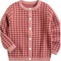 Custom Design Girl Cashmere Round Neck Special Knit Houndstooth Cardigan
